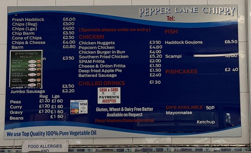 Pepper Lane Chippy sits at 4 Pepper Lane, Standish, Wigan, WN6 0PX, a location well-connected and accessible. The cozy allure of this fish and chip shop draws locals and visitors, especially on the weekends and busy Friday evenings. Street and lot parking makes it convenient for patrons, with ample free parking available. During peak hours, the crowd gathers to savor meals, often leading to a lively wait that’s filled with the mouthwatering aromas of freshly fried haddock and crispy chips. Each visit brings a gathering of families, groups, and tourists, creating a warm, communal vibe. The establishment benefits from wheelchair accessibility, welcoming everyone to enjoy their delightful menu.